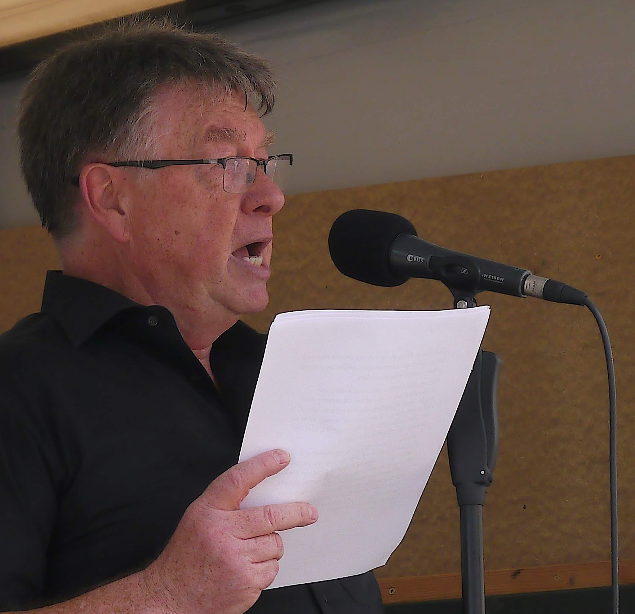 Hans Decruppe am 31.8.2019 zum Antikriegstag auf dem Alter Markt, Köln. Foto: Klaus Reinhard Müller (CC BY-SA 4.0)