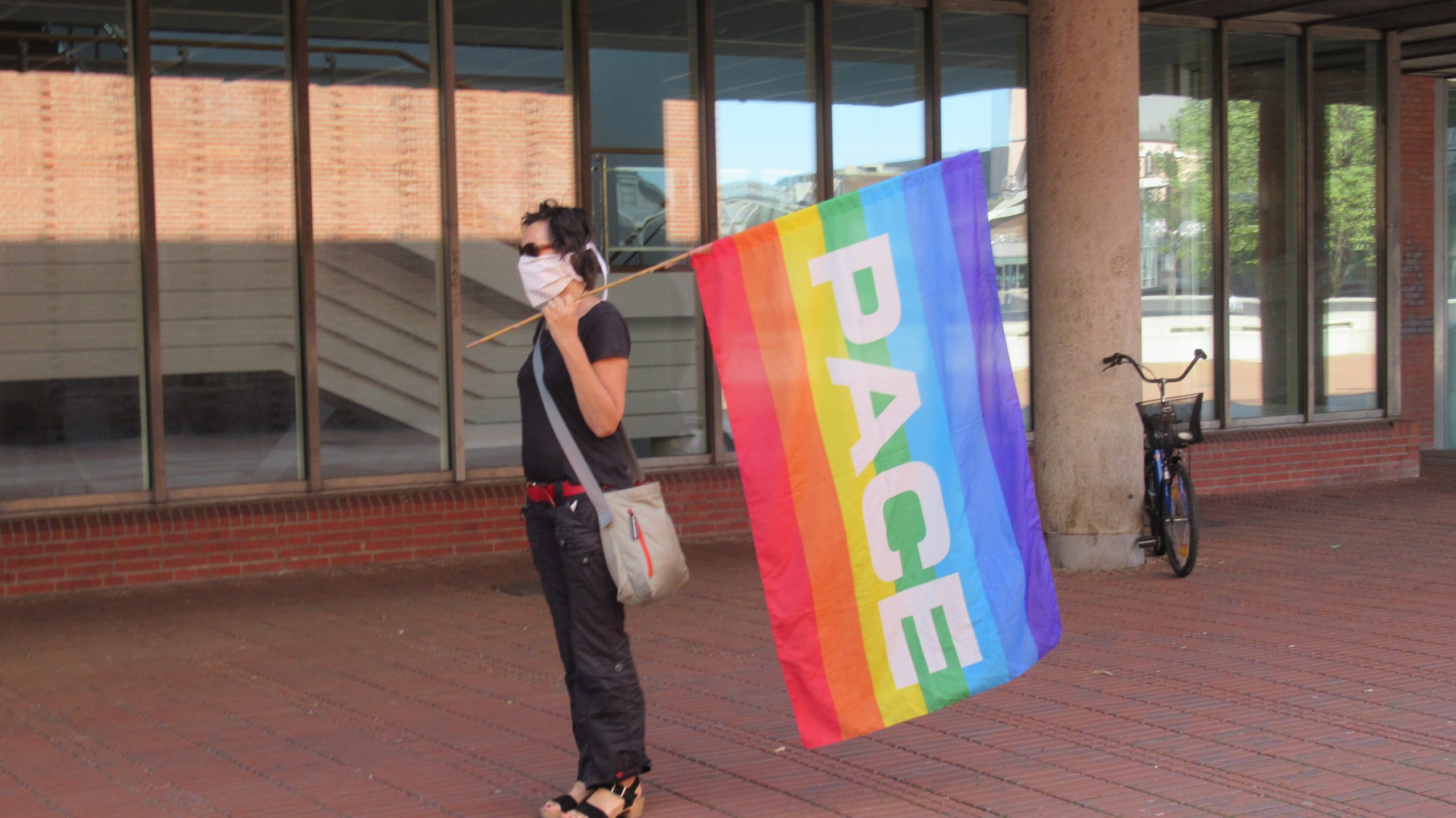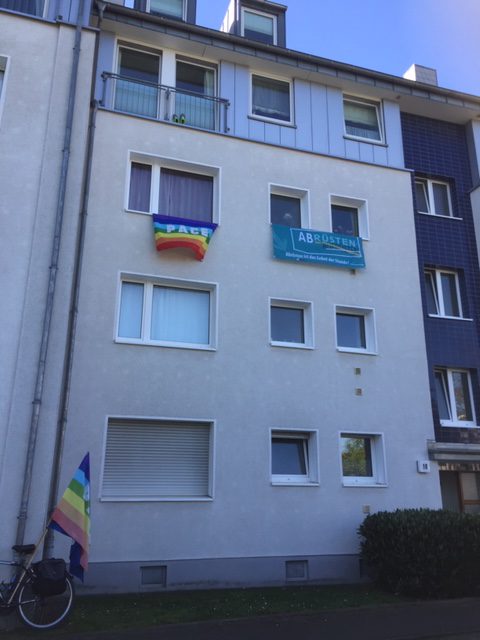 Da der am 11.4.2020 geplante Kölner Osterspaziergang nicht stattfinden konnte, entschieden sich einige Kölner Friedensfreund*innen, das schöne Wetter zu einem Spaziergang oder eine Radtour mit politischer Meinungsäußerung zu nutzen – Flaggen und Plakate lagen ja schon bereit.