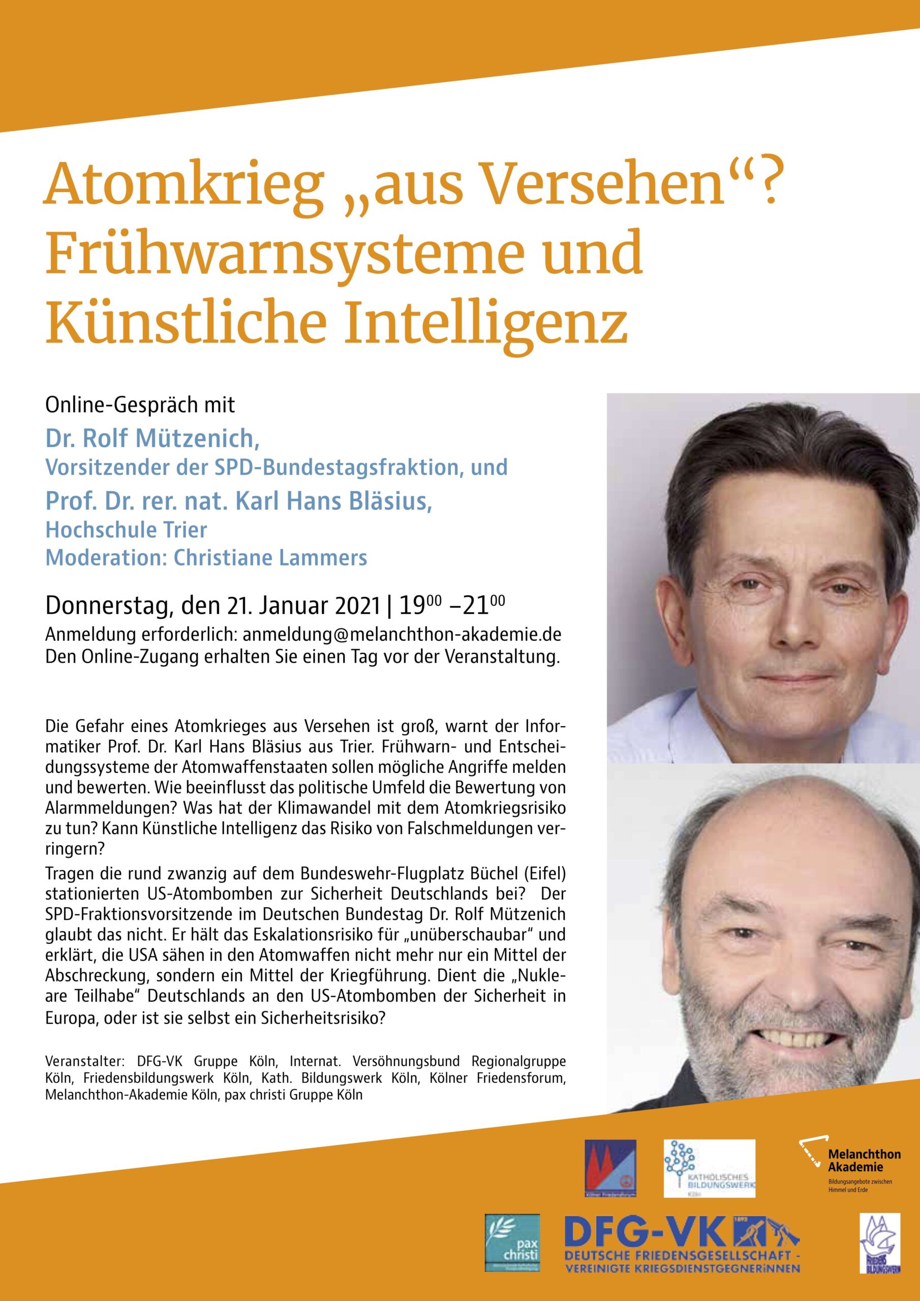Einladung zur Online-Diskussion: Rolf Mützenich und Karl Hans Bläsius am 21.1.2021 zum Thema Atomkrieg