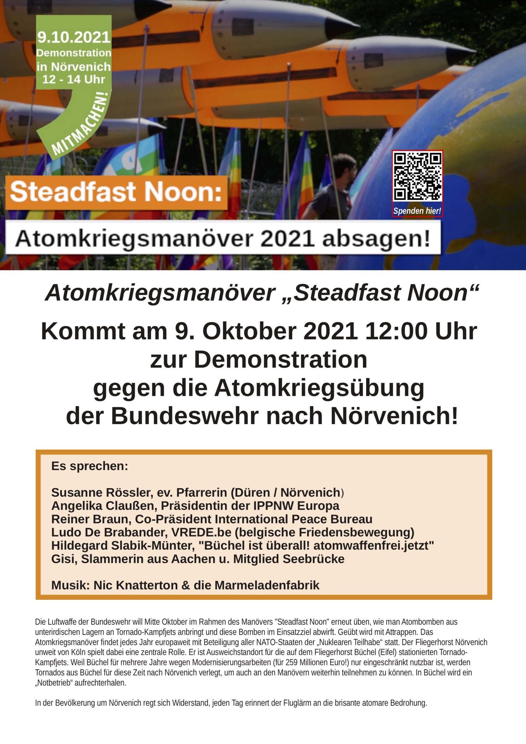 Demo am 9.10.2021 in Nörvenich: Atomkriegsmanöver „Steadfast Noon“ absagen!