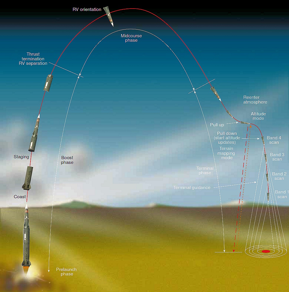 Flugbahn der Mittelstreckenrakete „Pershing II“. Grafik der US-Armee aus Juni 1986. Quelle: Wikimedia Commons.