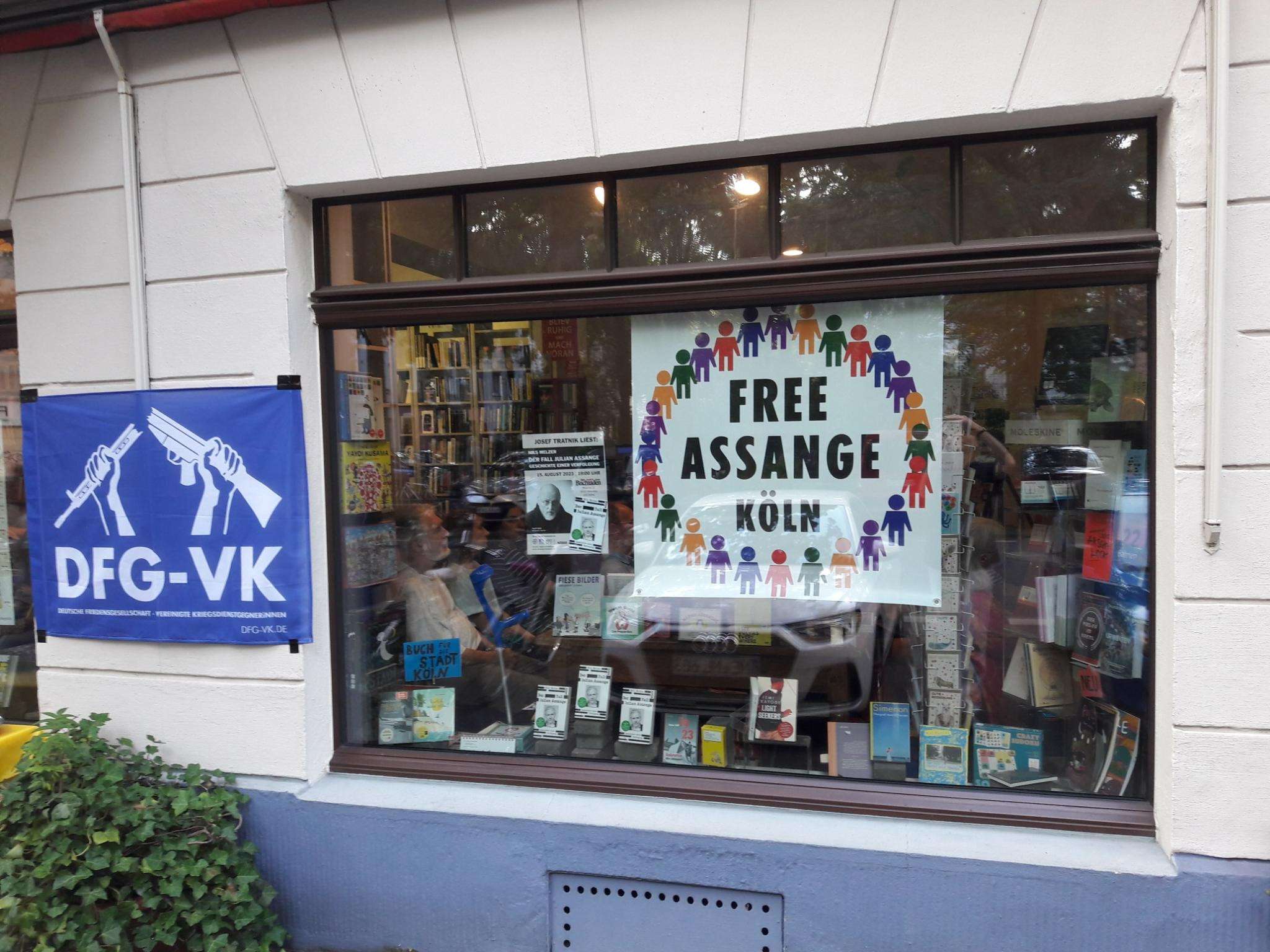 Zu der Lesung hatten Free Assange Köln, die DFG-VK Gruppe Köln, Amnesty International Bezirk Köln und Der andere Buchladen GmbH eingeladen. Eine Sprecherin der DFG-VK Gruppe Köln forderte für den WikiLeaks-Gründer Julian Assange einen Ehrenplatz in der Mitte der Gesellschaft, da er die radikale Wahrheit über Kriege, Folter und Kriegsverbrechen veröffentlicht habe. Sie forderte die sofortige Freilassung Assanges, der in einem Hochsicherheitsgefängnis in London inhaftiert und von unmittelbarer Auslieferung in die USA bedroht ist.