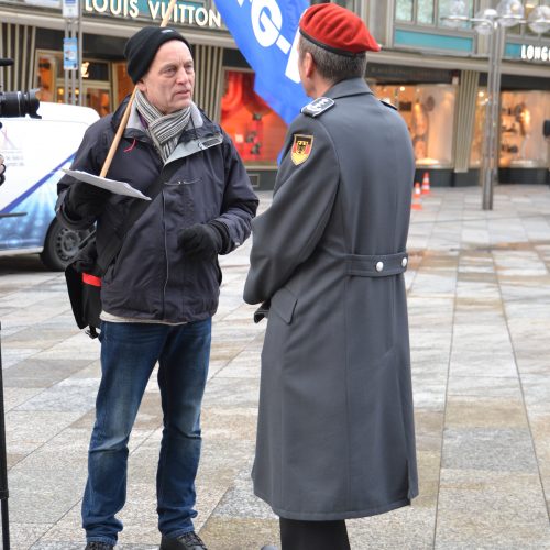 Köln, 16.1.2024. Kölner Friedensgruppen kritisieren den Internationalen Soldatengottesdienstes der Katholischen Militärseelsorge am 18.1.2024 um 9 Uhr im Kölner Dom als kirchliche Verharmlosung der deutschen Aufrüstungs- und Kriegspolitik. Mit einer Mahnwache auf der Domplatte von 08:30 – 10:30 Uhr rufen sie die Soldaten und Soldatinnen auf, ihre Waffen niederzulegen.