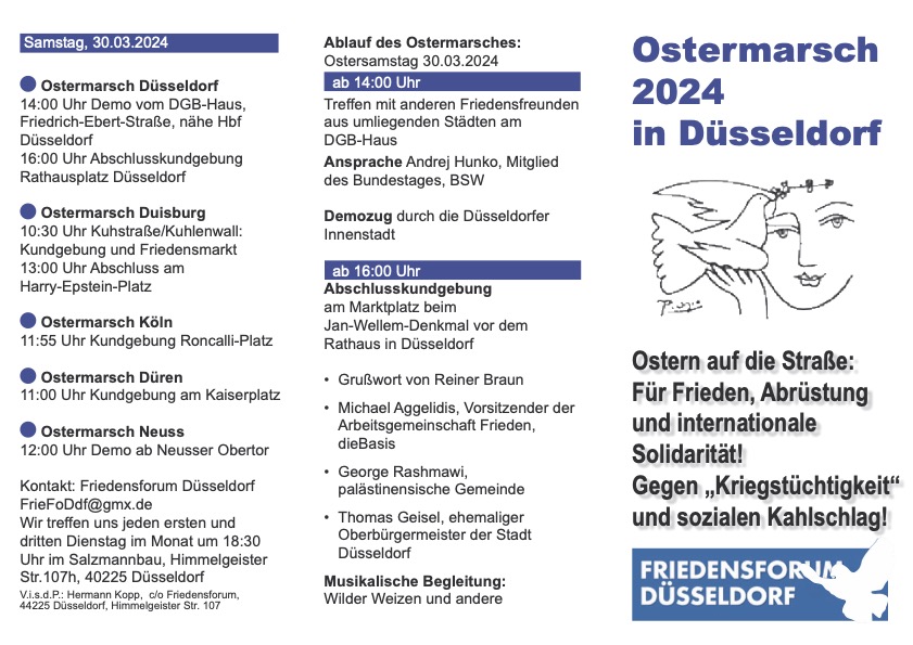 Flyer des Friedensforum Düsseldorf mit dem vollständigen Aufruf-Text zum Download.