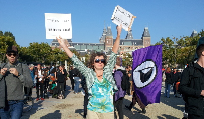 Zum Abschluß noch ein Foto aus Amsterdam, wo parallel ebenfalls eine Anti-TTIP-Demo mit ca. 10.000 TeilnehmerInnen stattfand: