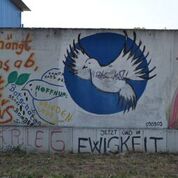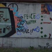 Aufgenommen im Juli 2015. Die Graffitis sind vermutlich im März 2003 entstanden.